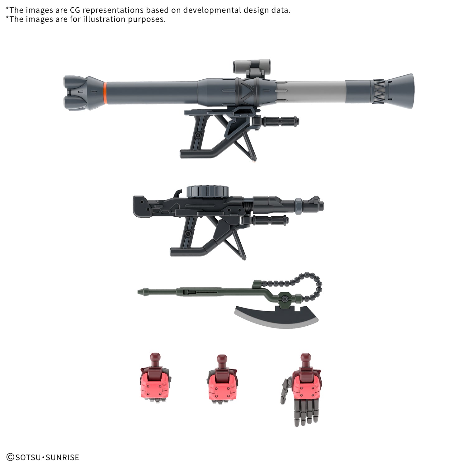 It features a newly designed Zaku Bazooka, independently movable shoulder blocks for dynamic posing, and a movable mono-eye. Marking stickers are included to match its on-screen look, bringing this updated GQ-style design to life.